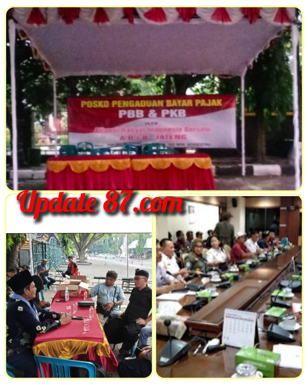Karena buta dan tulinya mata hati para wakil rakyat maka ARIB mencoba menyuarakannya dengan AUDIENSI ke Gubernur Jateng yang di wakilkan Sekda Jateng. Karena di wakilkan masyarakat sangat kecewa oleh karena itu ARIB membuka Posko aduan masyarakat terkait keberatan bayar Pajak Kendaraan bermotor (PKB) dan Pajak Bumi dan Bangunan (PBB).
