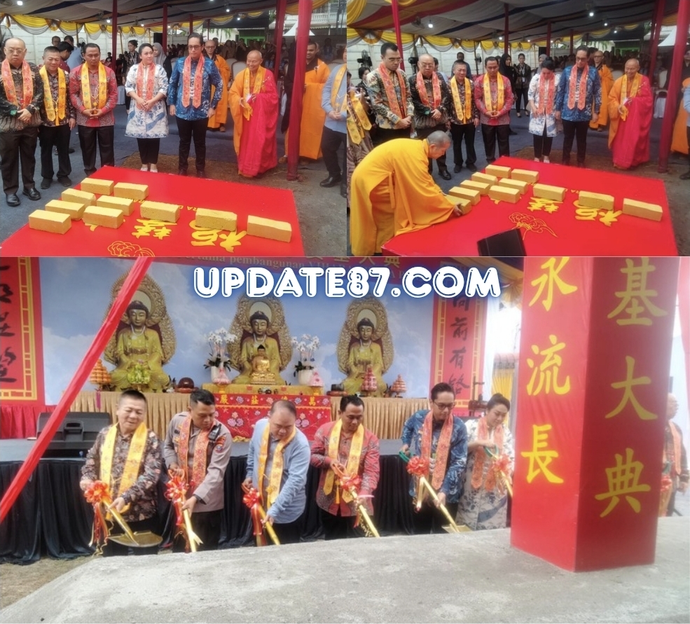 Medan – Wali Kota Medan, Rico Tri Putra Bayu Waas, melakukan peletakan batu pertama pembangunan Vihara Bhoga Prajna di Jalan Amplas, Jumat (3/10/2025).