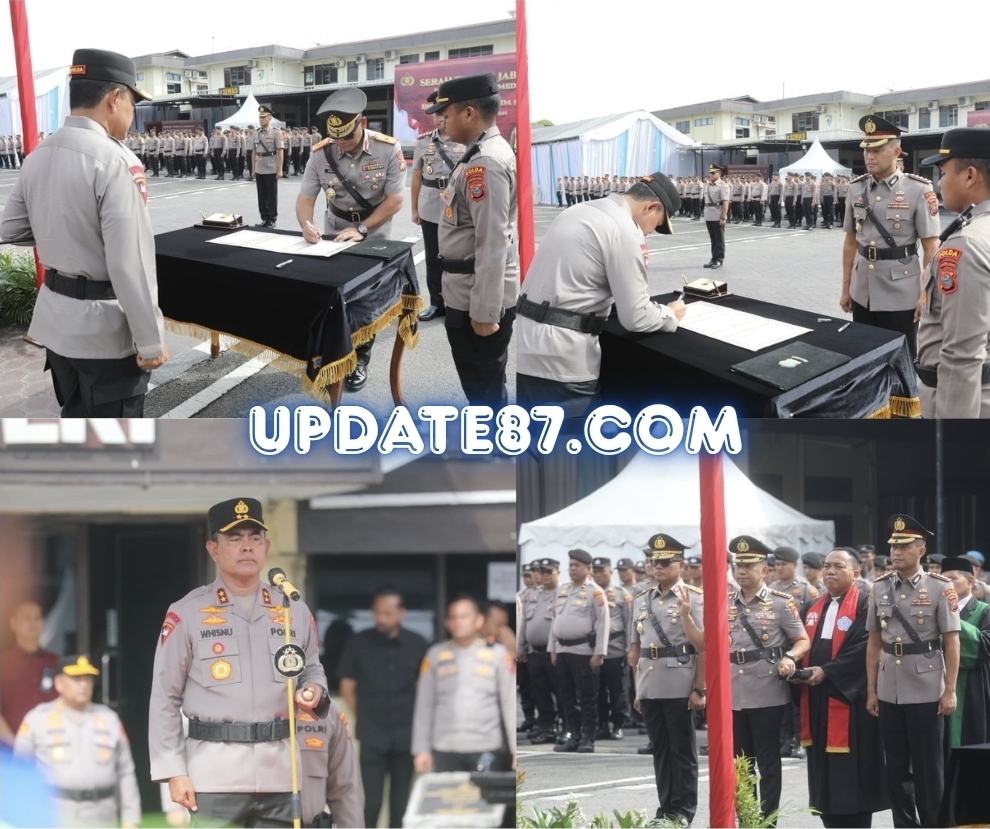 Medan – Bertempat di Lapangan Apel Polrestabes Medan, Kamis (9/10/2025), berlangsung kegiatan Serah Terima Jabatan (Sertijab) sejumlah pejabat utama di lingkungan Polda Sumatera Utara. Acara dimulai pukul 09.00 WIB dan dipimpin langsung oleh Kapolda Sumut Irjen Pol Whisnu Hermawan Februanto, S.I.K., M.H.