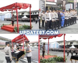 Rangkaian acara diawali dengan laporan Dan Up, masuknya Inspektur Upacara, penghormatan pasukan, pembacaan Surat Telegram Kapolri tentang mutasi jabatan, pengucapan sumpah jabatan, doa bersama, serta penghormatan pasukan penutup sebelum Inspektur Upacara meninggalkan lapangan.