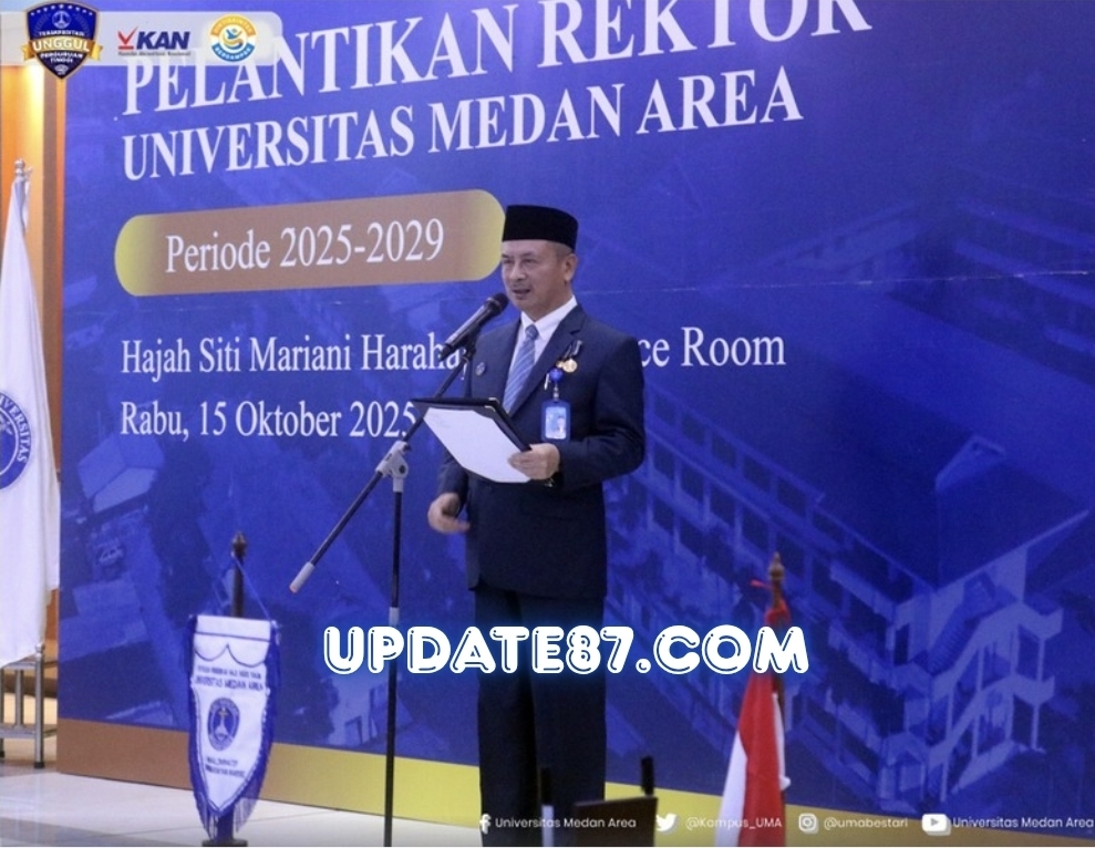 Medan – Universitas Medan Area (UMA) menggelar acara Pelantikan Rektor Periode 2025–2029 yang berlangsung dengan khidmat di Convention Hall Hj. Siti Mariani Harahap, Lantai 3 Gedung Perpustakaan UMA, Rabu (15/10/2025).