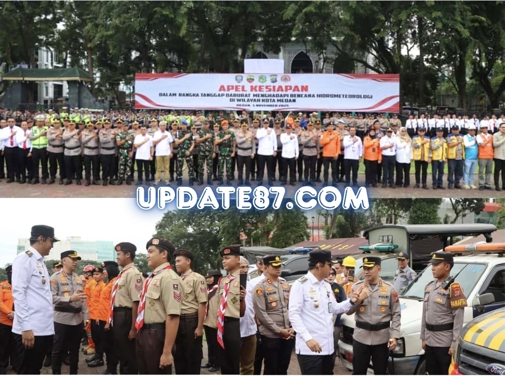 Medan – Dalam upaya menghadapi potensi bencana alam di musim hujan, Polrestabes Medan menggelar Apel Kesiapan Tanggap Darurat Bencana Hidrometeorologi Tahun 2025 di Lapangan Benteng Medan, Rabu (5/11/2025).