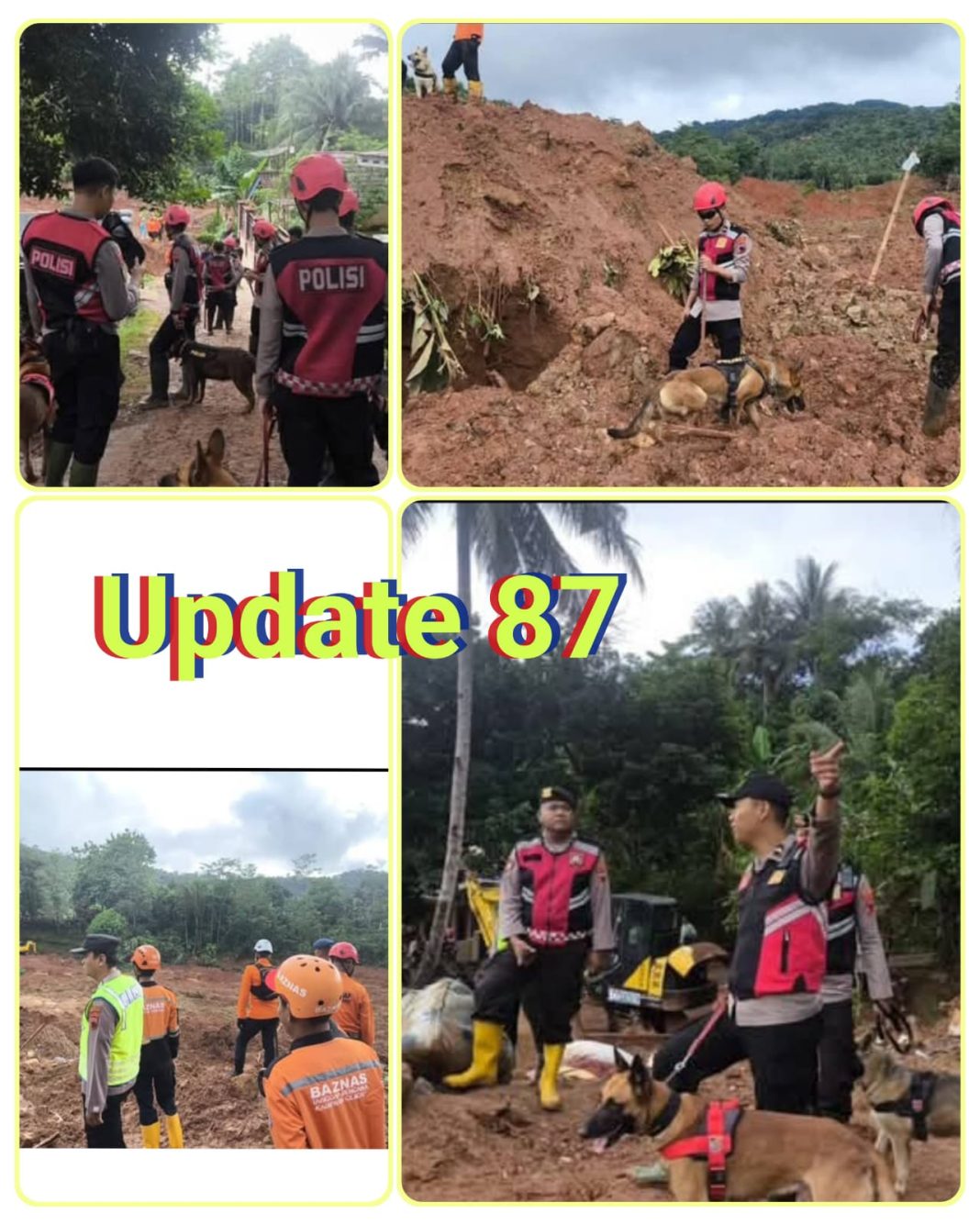 “Upaya tanpa lelah dari seluruh tim SAR gabungan patut diapresiasi. Terlebih, peran Unit K9 sangat menentukan. Dengan kemampuan dan indera penciuman tajam yang mereka miliki, tim dapat menemukan titik‐titik kunci yang mengarahkan pada penemuan para korban,” ungkapnya.