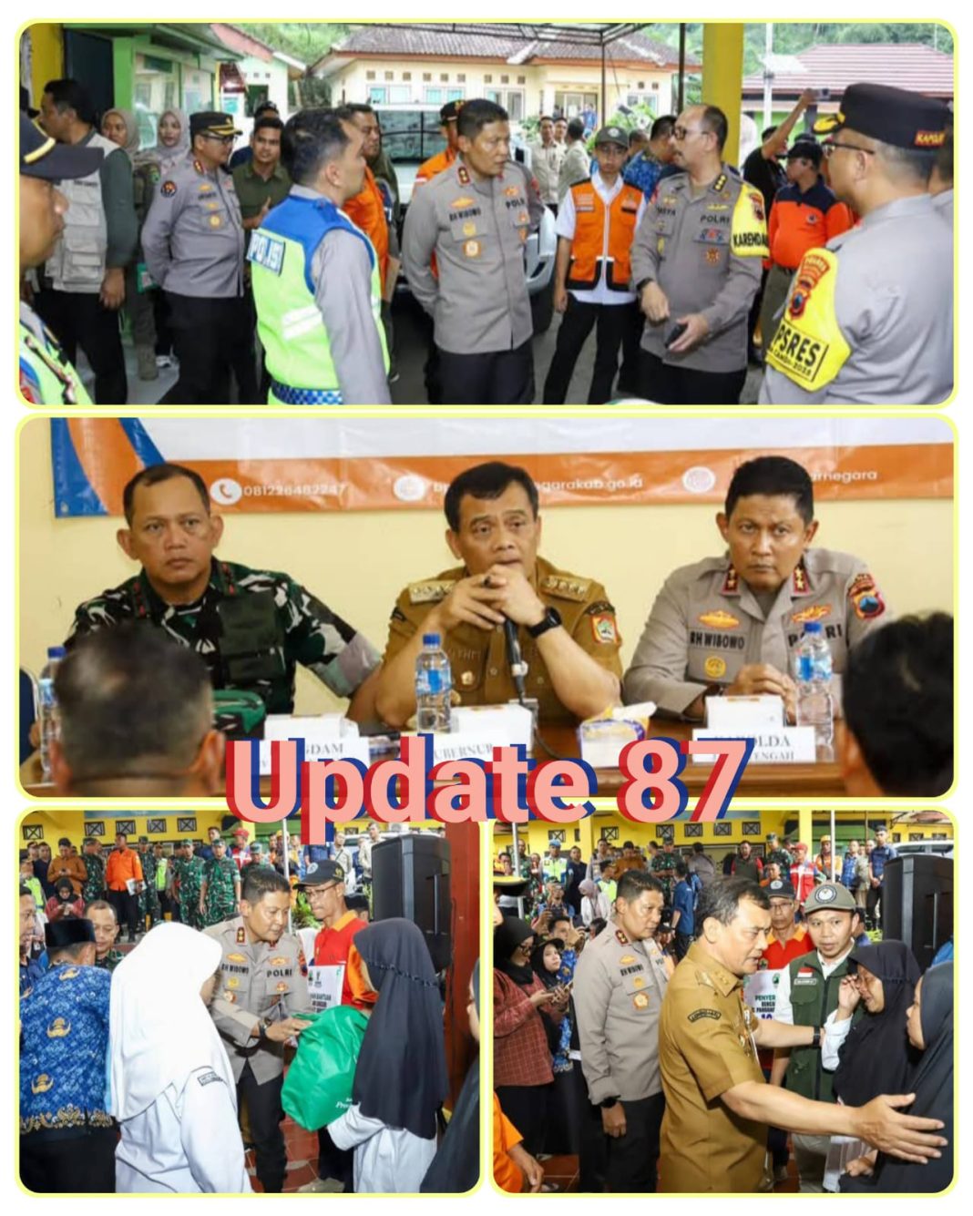 Kota Semarang, Update 87.com || Polda Jateng – Upaya penanganan bencana tanah longsor di Dusun Situkung, Kecamatan Pandanarum, terus dikebut. Pada Senin (17/11/2025) sore, Kapolda Jawa Tengah Irjen Pol Ribut Hari Wibowo bersama Gubernur Jawa Tengah Ahmad Luthfi serta jajaran Forkopimda Provinsi Jawa Tengah meninjau langsung posko pengungsian warga di Kantor Kecamatan Pandanarum.