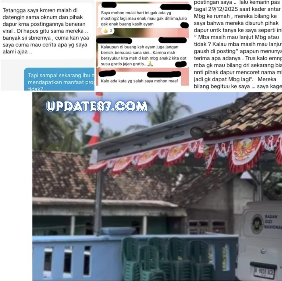 Salah satu penerima manfaat mengungkapkan bahwa kader MBG tersebut meminta agar menu Makan Bergizi Gratis tidak dipublikasikan di media sosial, baik dalam kondisi enak maupun tidak enak. Bahkan, kader tersebut disebut menyampaikan bahwa makanan harus tetap diterima, dan apabila tidak layak atau tidak enak, *disarankan untuk dibuang atau diberikan kepada ayam*.