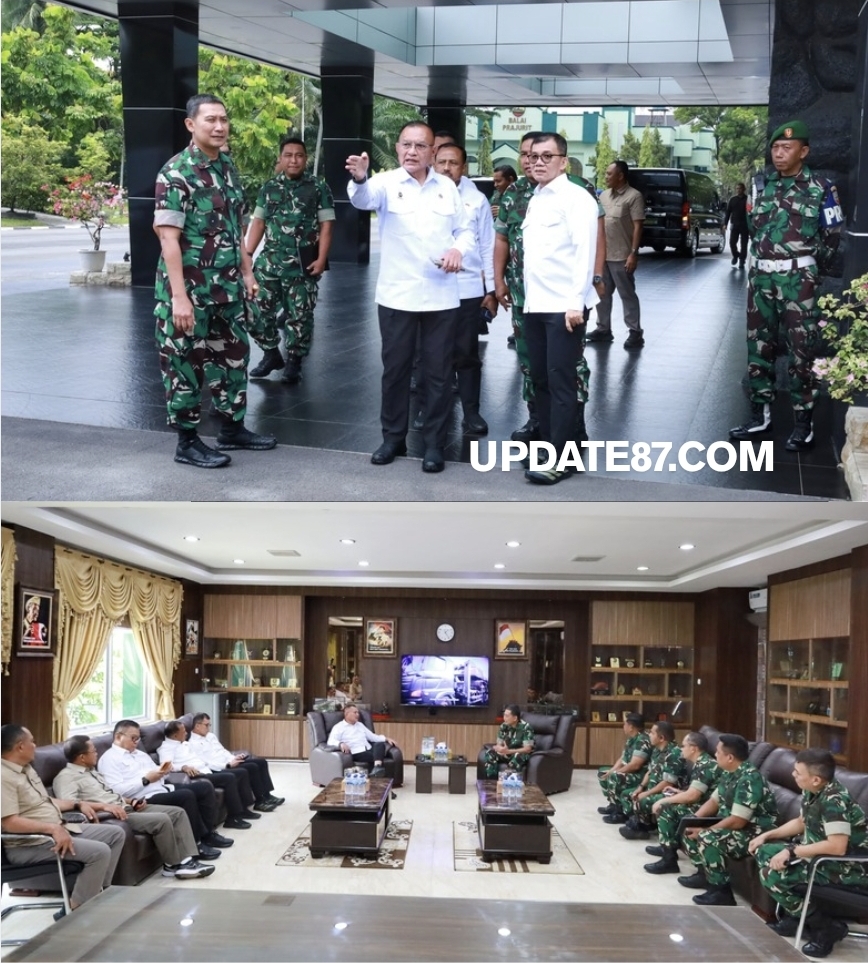 Wakil Menteri Koordinator Bidang Politik dan Keamanan Indonesia Lodewijk Freidrich Paulus beraudiensi dengan Pangdam I/Bukit Barisan Hendy Antariksa di Ruang Kerja Pangdam I/BB Lantai 2, Makodam I/Bukit Barisan, Selasa (24/2/2026), sebelum melanjutkan kunjungan kerja ke Aceh Utara.