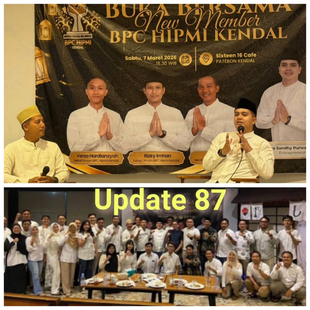 Kendal, Update 87.com || Badan Pengurus Cabang (BPC) Himpunan Pengusaha Muda Indonesia (HIPMI) Kabupaten Kendal mengadakan *Buka bersama bareng Pemerintah Kabupaten Kendal* di Sixteen Resto Patebon kendal 07/3/2026 merupakan bentuk manifestasi kerja sama yang mantap untuk menuju Indonesia emas antara generasi muda dan pemerintah Kabupaten Kendal.