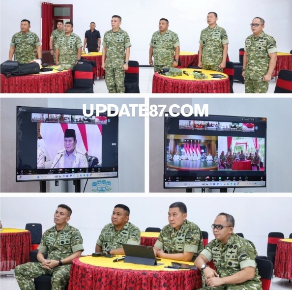 Pangdam I/Bukit Barisan Mayjen TNI Hendy Antariksa mengikuti video conference (vidcon) launching 218 Jembatan Garuda yang digelar secara nasional dari Bandara Binaka, Gunungsitoli, Kepulauan Nias, Sumatera Utara, Senin (9/3/2026).
