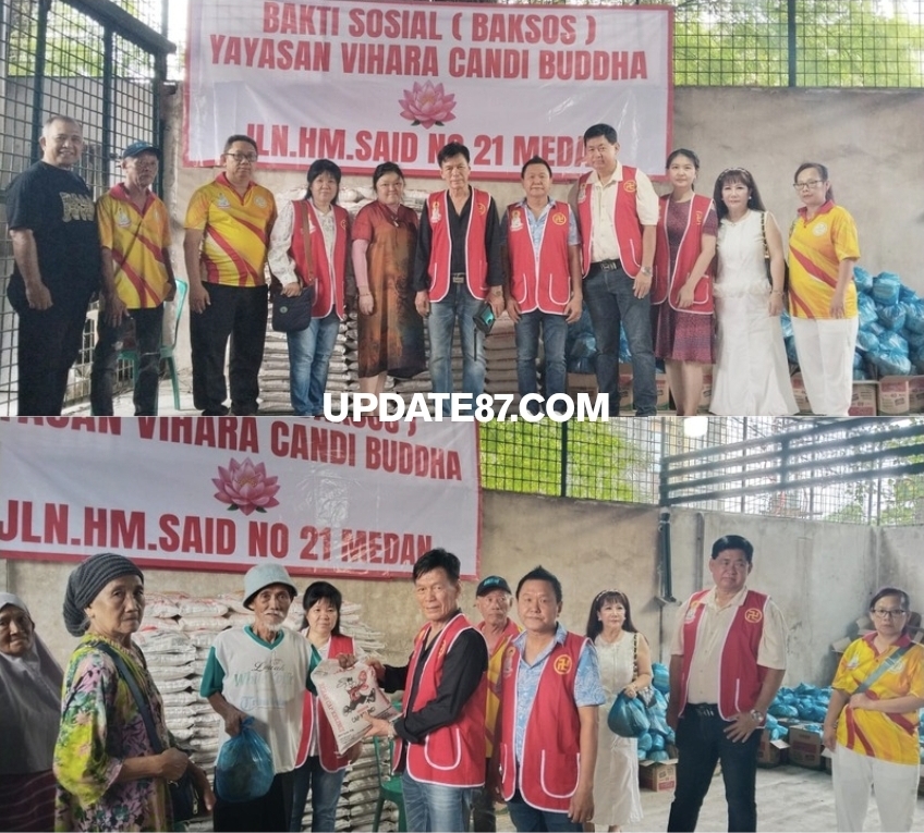 Medan, Update87. com – Pengurus Vihara Candi Buddha menggelar kegiatan bakti sosial (baksos) di halaman vihara yang berada di Jalan HM Said, Kota Medan, Minggu (12/4/2026) siang.